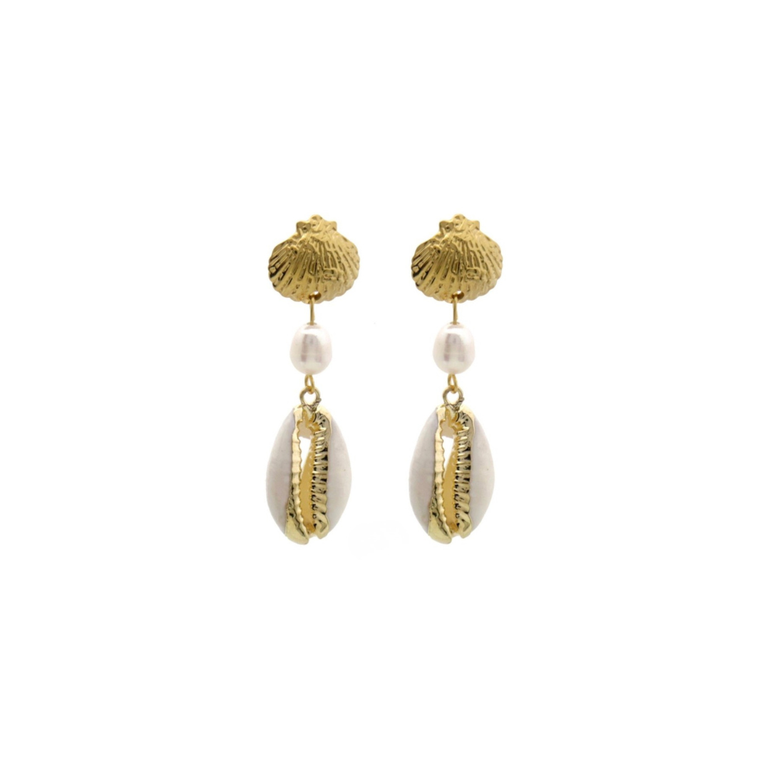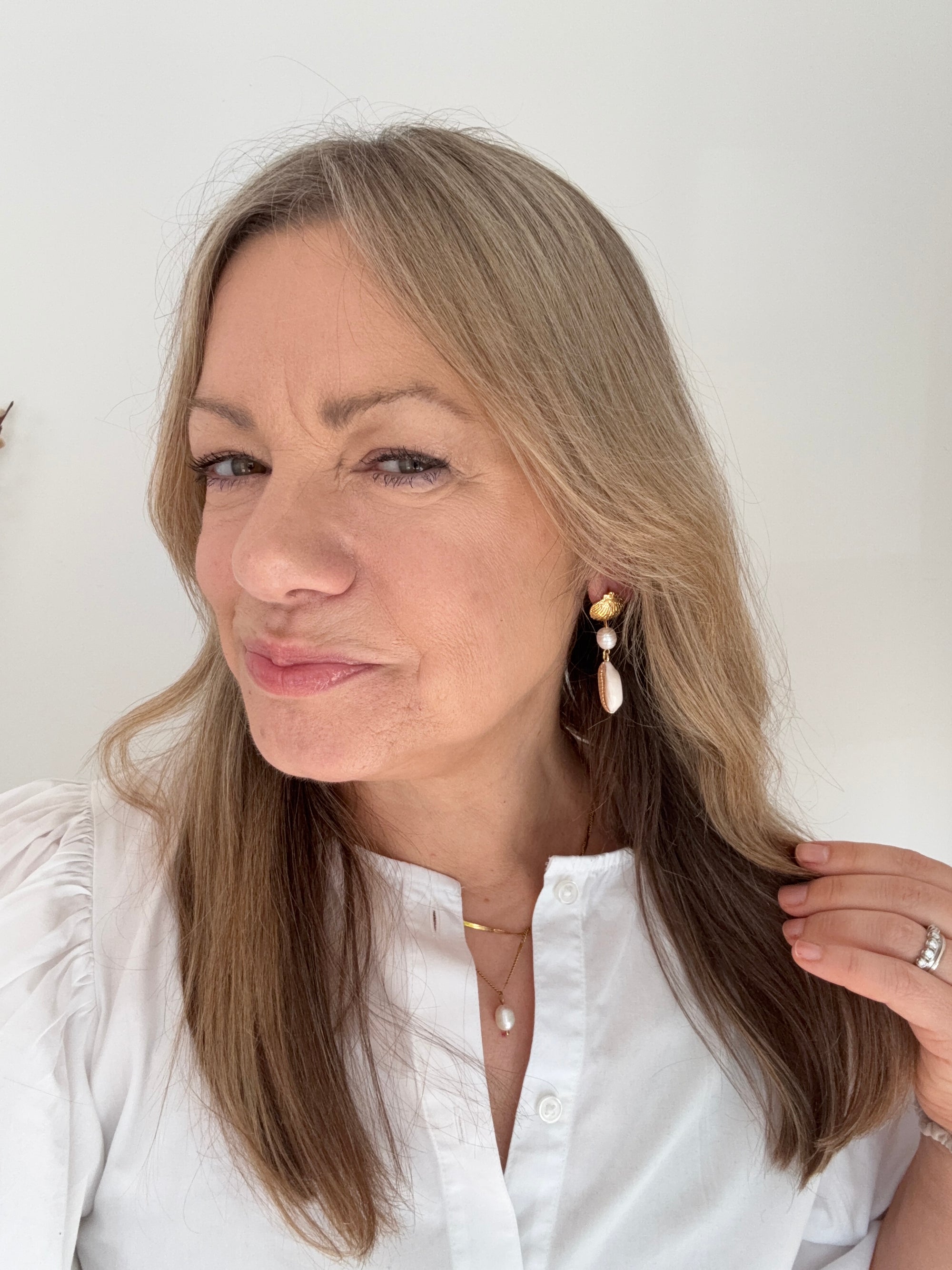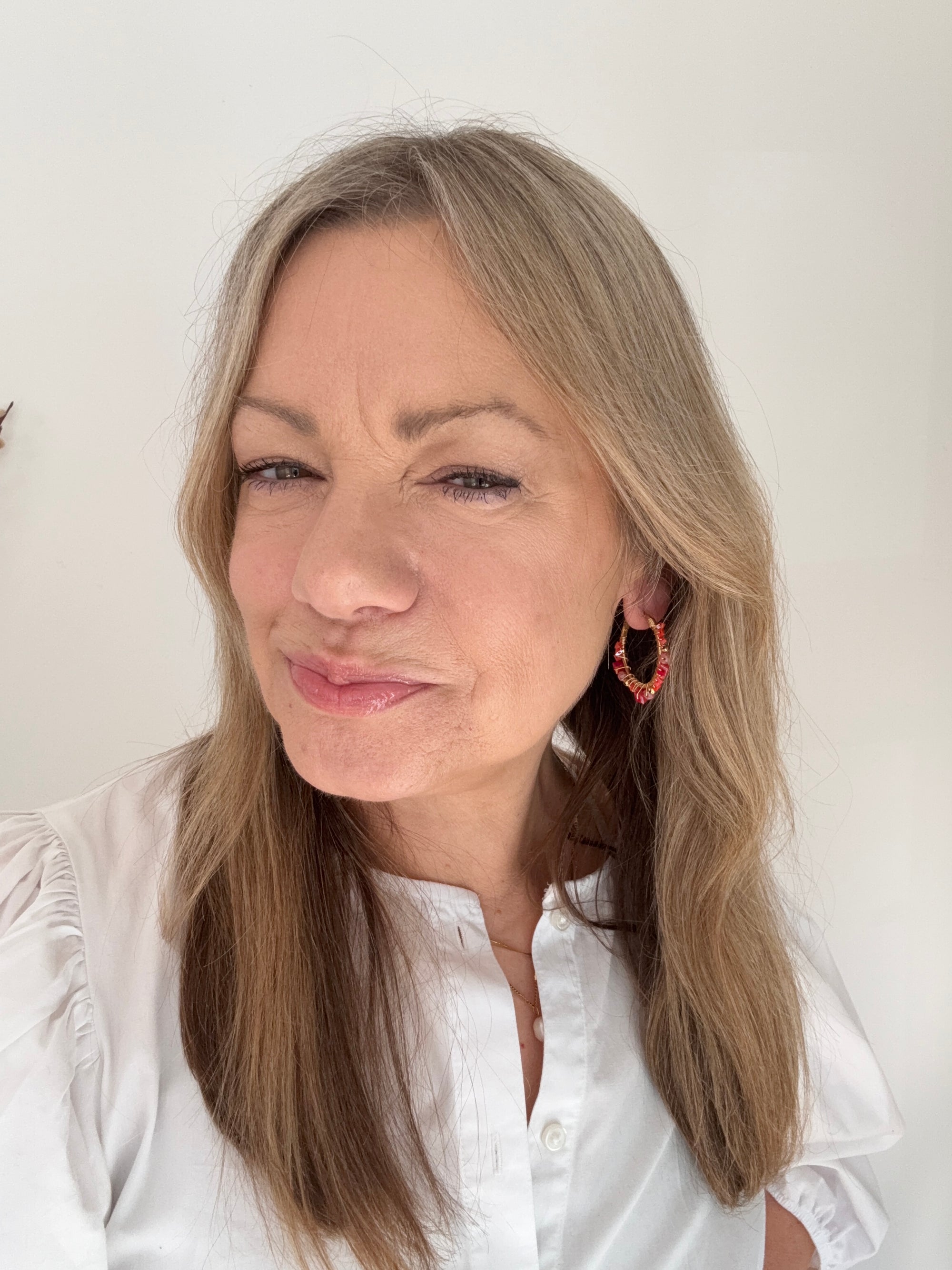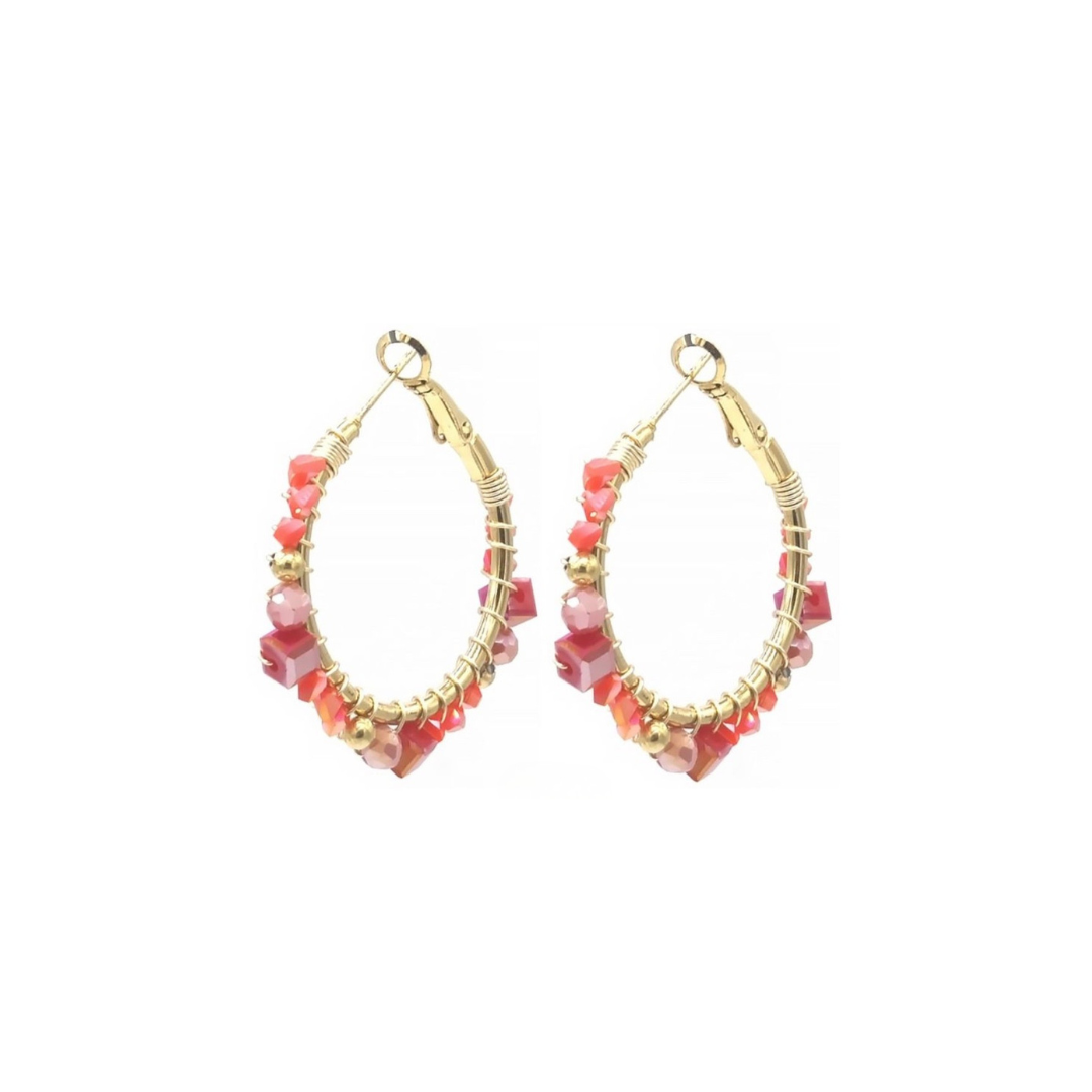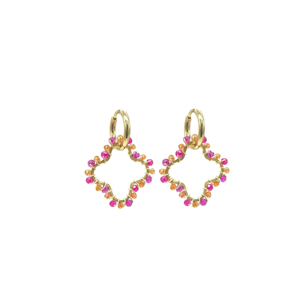 Pink & Orange Beaded Clover Gold Hoop Huggies Earrings